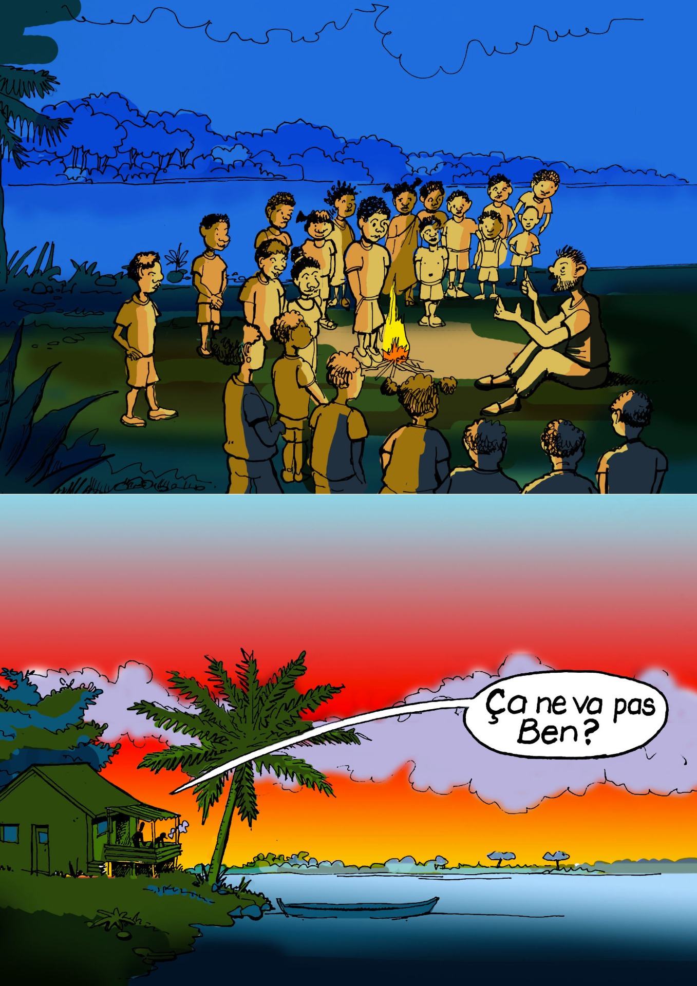 Ben est sujet à de nombreux doutes et a des difficultés pour encadrer l'équipe de jeunes ados pour réaliser ces BD sur les légendes ancestrales bushinenge. Son câble de branchement est mangé par les lézards…