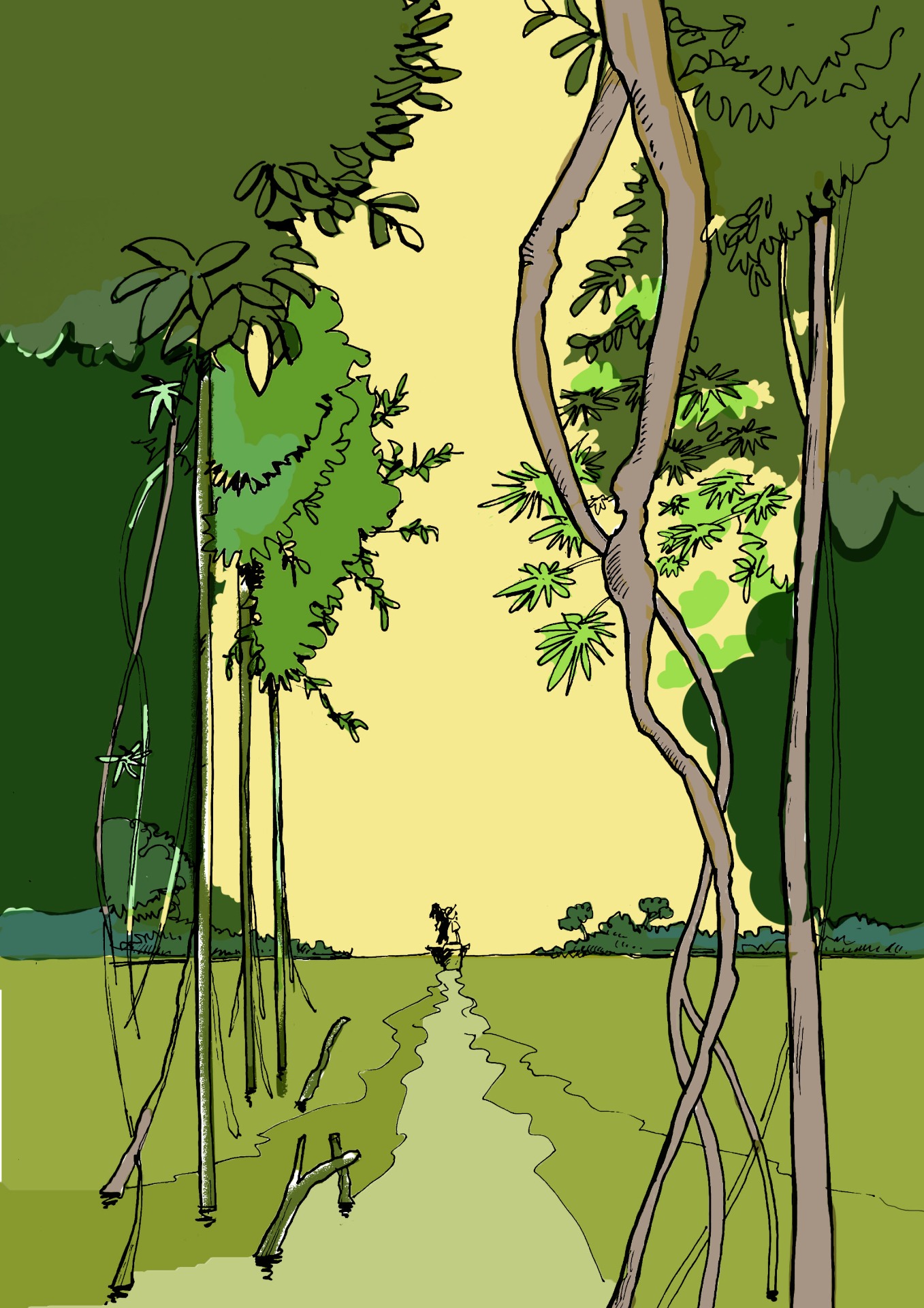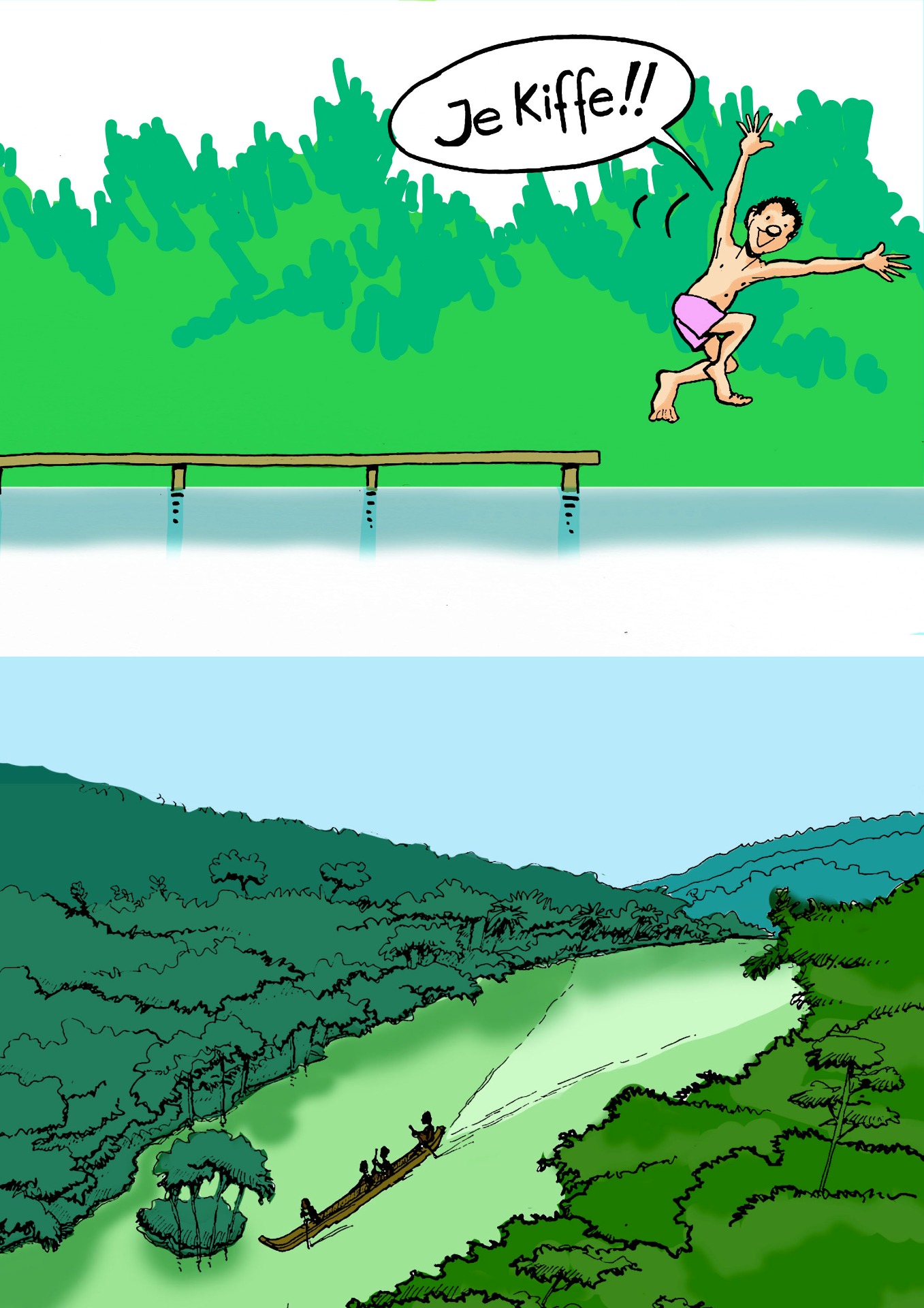 Une BD sur la Guyane. Genèse et élaboration d'une bande Dessinée créée à la suite d'une résidence d'artiste à Apatou en Guyane, au bord du Maroni et au bout de la route dans un collège où 80% des élèves viennent en pirogue.
