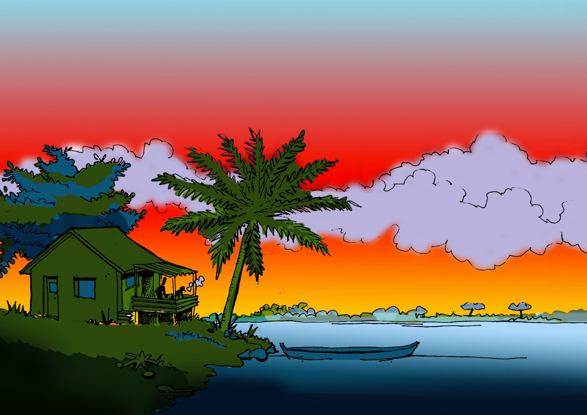 Là-bas, il découvre une autre ambiance et son aura d'artiste impressionne. Le challenge est de réaliser un recueil de BD des légendes bushinenge que les vieux racontaient à la veillée.
